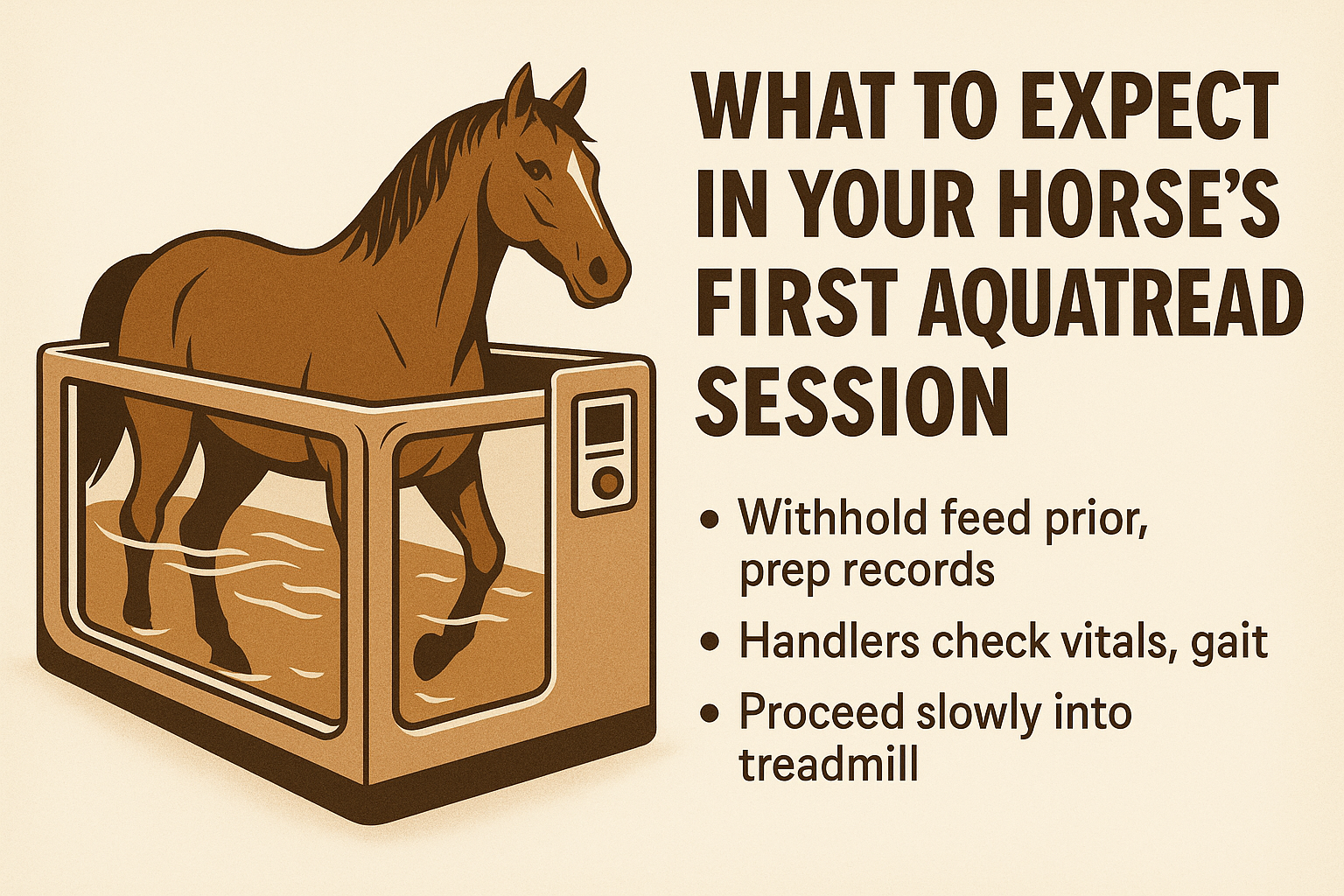 Your horse arrives calm and ready. Withhold feed for 4-6 hours beforehand to minimize digestive upset during movement. Ensure hooves are clean and trimmed—no fresh shoes if possible, as the treadmill belt grips barefoot best.